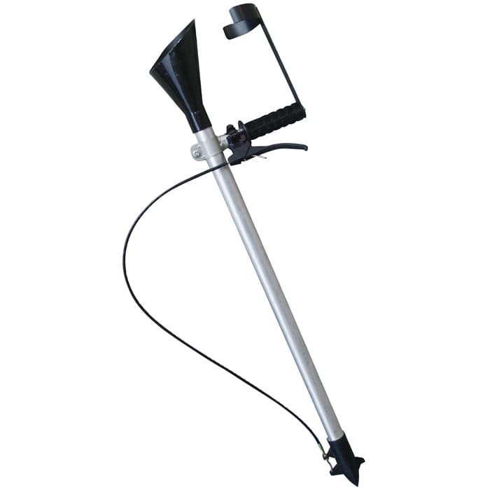 まく場所に先端を軽く差し、レバーを引くとタネが落ちます