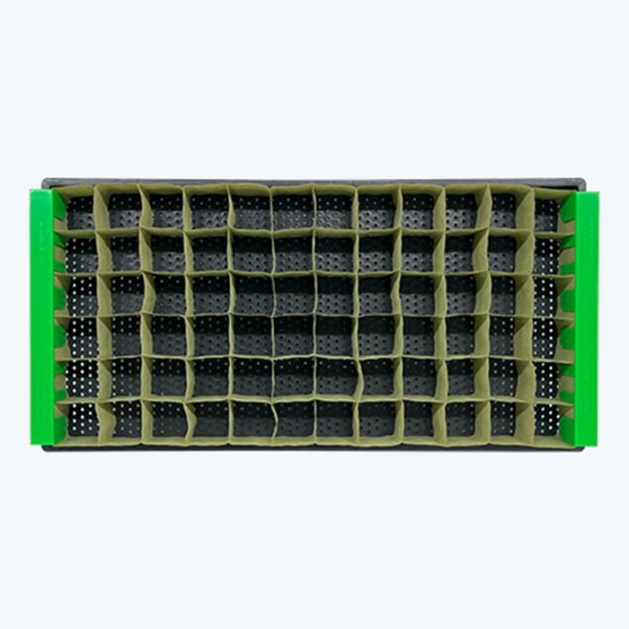 展開くし歯や展開枠を使用して水稲育苗箱の中に展開し、タネまき・育苗を行います。タネまきの際には、ポットプレート・ポットシーダーを用いることで、省力的に作業を行えます。
