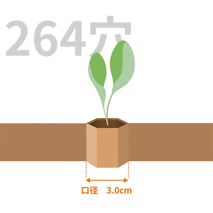 1冊あたり264穴、口径3cmのチェーンポット。作物に合わせて好適な株間の規格をお選びいただけます