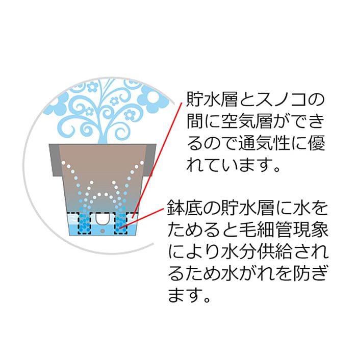プランターの上部に厚みを見せることにより、高級感を演出しています。また、底面給水機能付きでお手入れもらくらく。旅行などの長期外出時にも安心です。