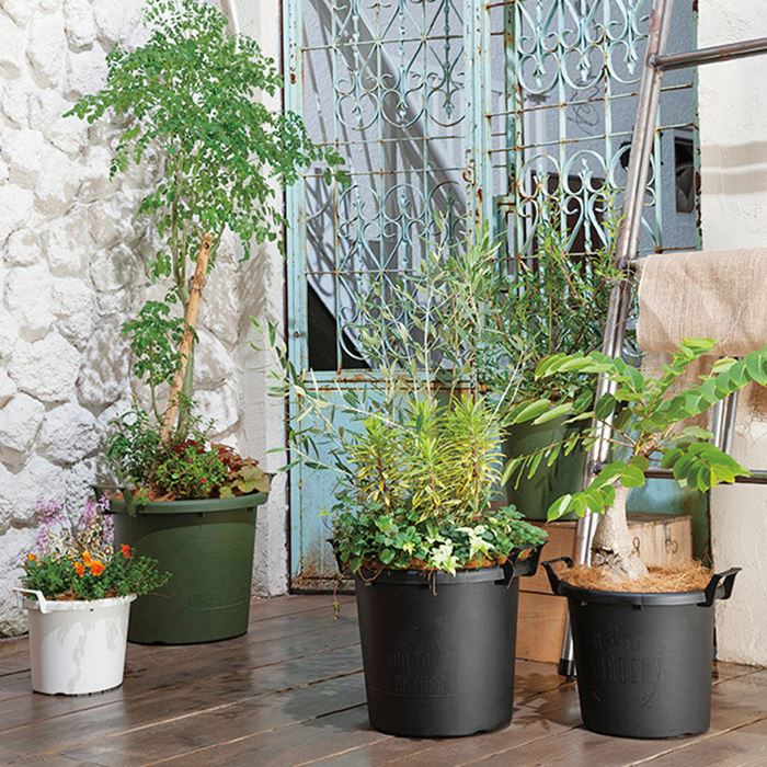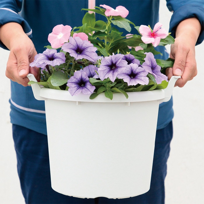 取っ手が付いているので移動にも便利なプランター。サイズによってロゴデザインが違うので、植物や用途に応じて使い分けができます。またロゴ部分に色を塗ればオリジナルの鉢として楽しめます。