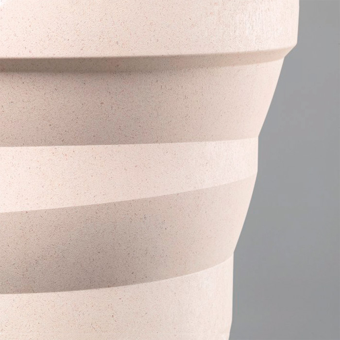 シャープなフォルムと陰影が特徴的な木粉入りデザインポット