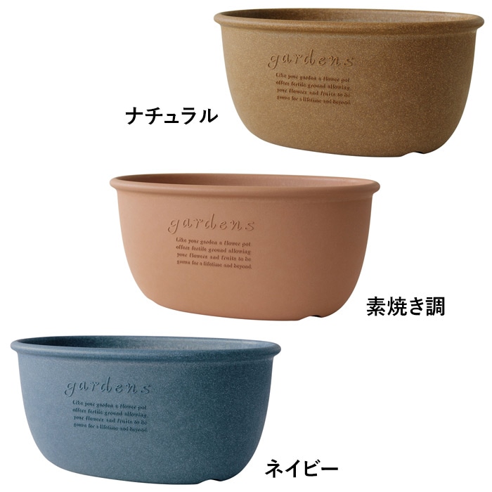 やわらかな曲線と丸みのあるフォルムが特徴のオーバルプランター。口径が広く、ゆったりとした寄せ植えが楽しめます。資材の節約や有効利用にもつながる地球と環境に優しい素材です。「Arbre」は、自然素材(木粉)を融合した原料を用いることでより自然に近い風合いで花や緑を優しく引き立ててくれます。「Papier」は、紙の端材(古紙)を有効利用し、紙の優しい質感を再現しました。軽くて耐久性に優れ、植物をより際立てる美しいカラーと独特な風合いが特徴です。