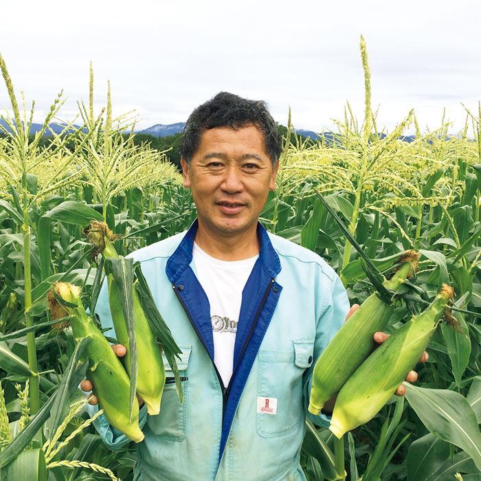 かぶりつくと、粒がはじけて甘さが広がる大型のとうもろこし。黄金色の粒は柔らかく、爽やかな甘さが特長です。地元嶽高原でも評判のおいしさをお楽しみください。