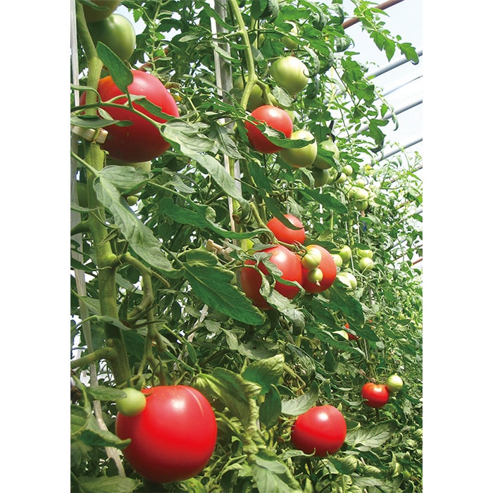 有機栽培で大切に育てている「りんか409」です。土づくりにこだわり、酸味と甘みのバランスがよいトマトを目指して努力を続けています。大雪山から流れ出るミネラルたっぷりの水に恵まれた農場の畑と、夏の昼夜の温度差がコクのあるトマトの味を作り出します。