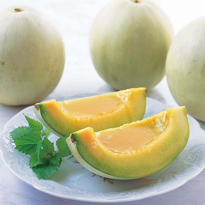 脱脂粉乳を散布するという栽培方法で育てた「プリンスメロン」。カルシウムなどのミネラルや同時に散布するブドウ糖が栄養になり育った、果汁たっぷりの甘いメロンです。