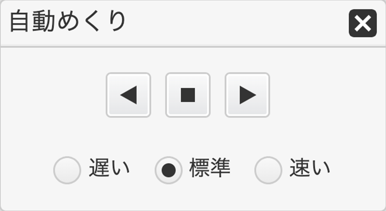 自動的にページをめくります。クリックすると、ポップアップウインドウが出て操作できます。