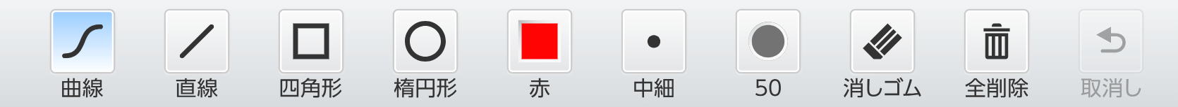 ご覧いただいているページの中に、直接ペンで書く感覚で、直線や曲線を記入し、保存することができます。クリックすると使用できるアイコンが表示されます。