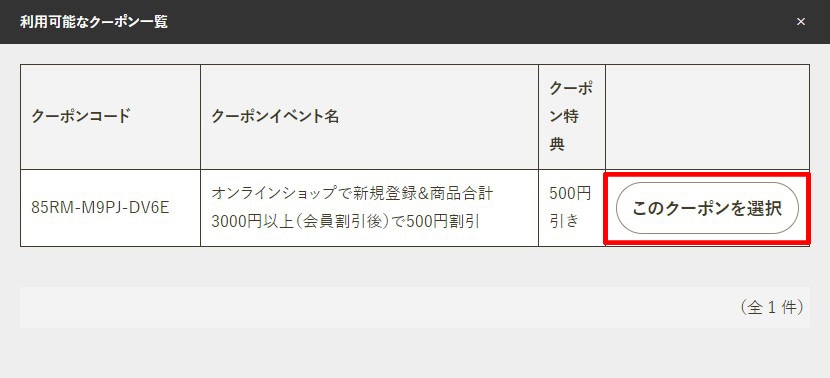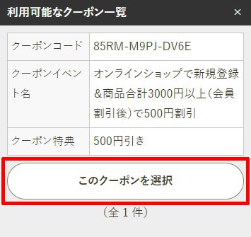 ※会員割引後の価格が500円以上でクーポンをご使用になれます。