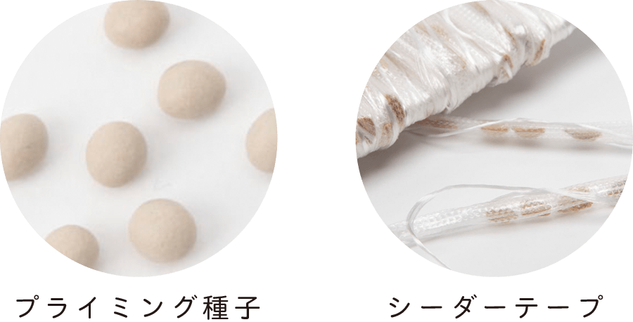 他にも、発芽が早くそろうように処理をほどこした「プライミング種子」、広い畑でも種まきしやすいようにテープ状に加工した「シーダーテープ」など、さまざまな種類の加工種子があります。