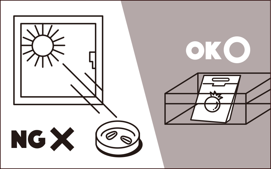 植物には日光を当てた方がよいと思うかもしれませんが、お手元に届いた種は、休眠中の状態です。湿度や日光を避け、なるべく変化のない一定の環境で眠らせてあげることが大切。