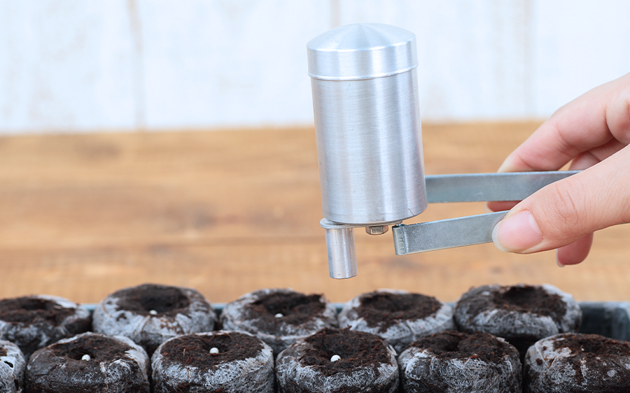 小さすぎる種をまくときにおすすめなのが、この種まき器。プレート穴を種のサイズに合わせて、一粒ずつ種をまくことができます。