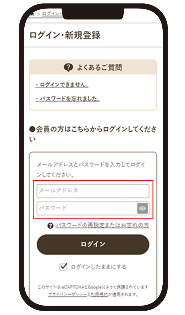 ログイン画面より、メールアドレスとパスワードを入力してください。