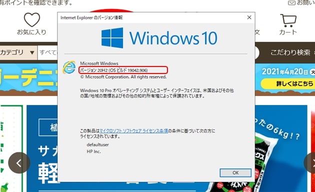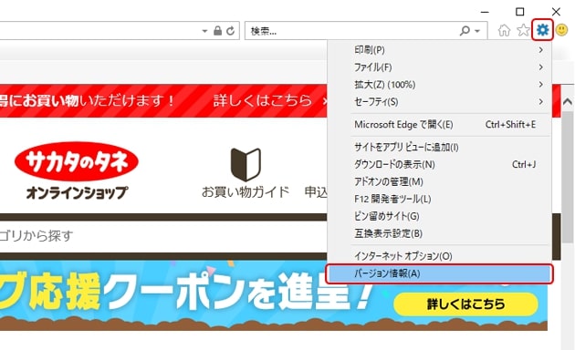 3. バージョンの確認をクリックすると以下のようなページが表示されます。赤枠部が現在インストールされているInternet Explorerのバージョンです。