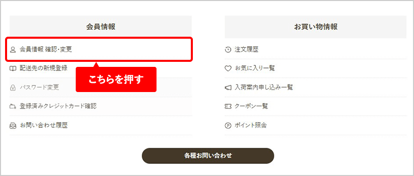 「マイページ」画面左下の「会員情報」の「会員情報の確認・変更」画面でご設定いただけます。